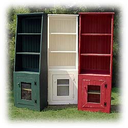 Our furniture is solid knotty pine made to last and be used. No air nails or staples!! We screw & plug for the best in durable lasting construction. Our designs are perfect for your cottage. See our extensive color choices for your perfect cottage decor! Any item can be ordered in any color choice. All orders ship out in 5 working days or less! See our awesome cottage signs. Cottage signs and painted solid pine cottage furniture are the hottest items in demand right now. We have cottage hutches ranging from 1' wide up to 4' wide x 6' tall. We even have a wonderful Birdhouse Hutch that you can choose a different color roof and backing for to compliment your cottage decor! Line up our cottage hutches & bookcases to make entire wall systems! Skinny hutches great for cottage bathrooms, medium 2-3' wide great for cottage kitchens and bedrooms. Large 3'-4' cottage hutches great for living rooms. Anything or anywhere you want! |