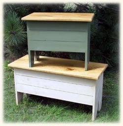 Look at our fantastic cottage colors!! Any item available in any color. Ships out in 5 days or less! Old colors: Variation of solid colors, distressed to show grain, dark finish added to make appear darker and timeworn. Click on any color for an enlarged sample. Solid color: Edges slightly roughed. (except in the case of the stain finish) Click on any color for an enlarged sample.
